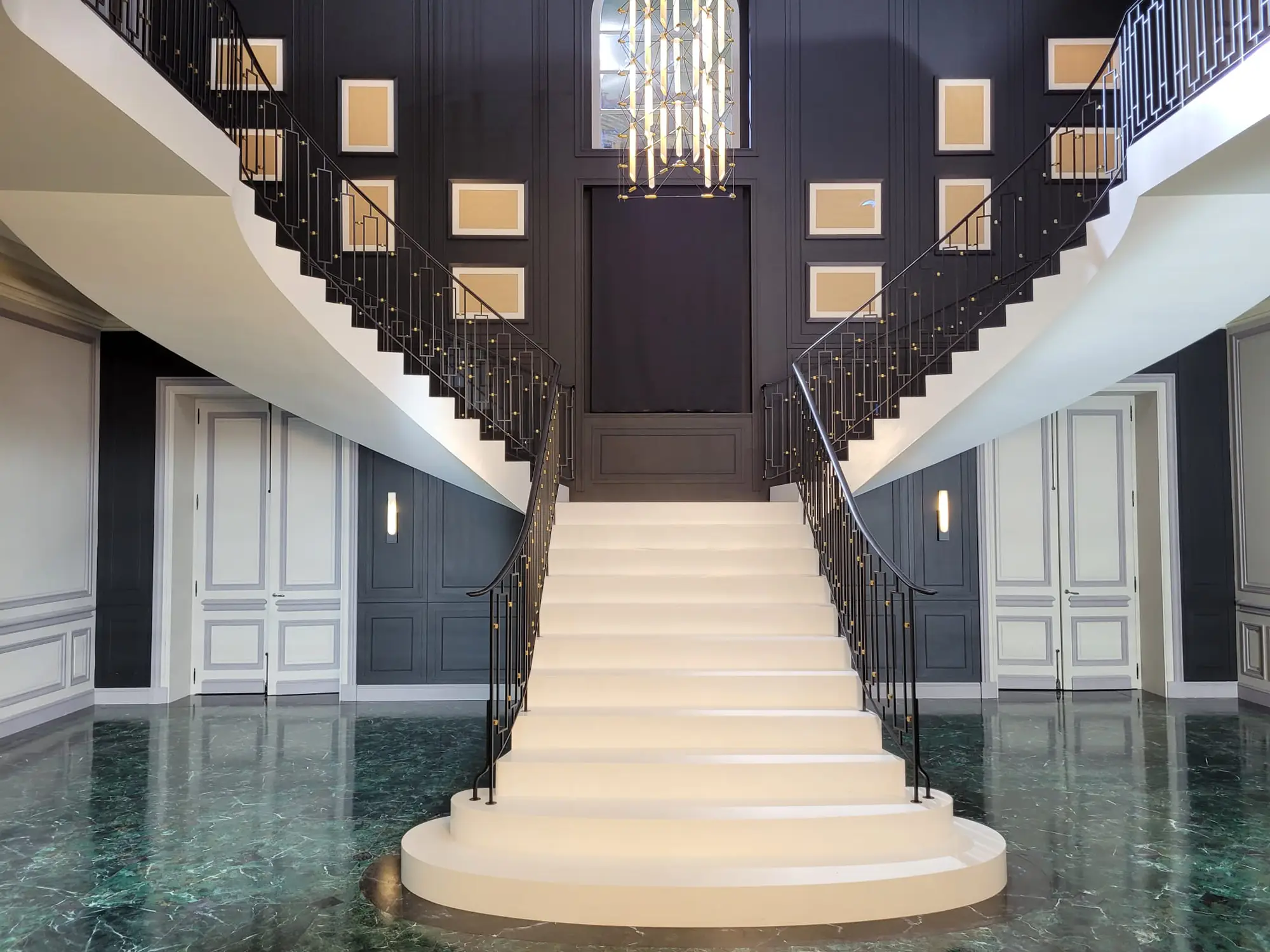 Murs recouverts de 4 lisses en bois sur toute la périphérie, espacés de 3 m