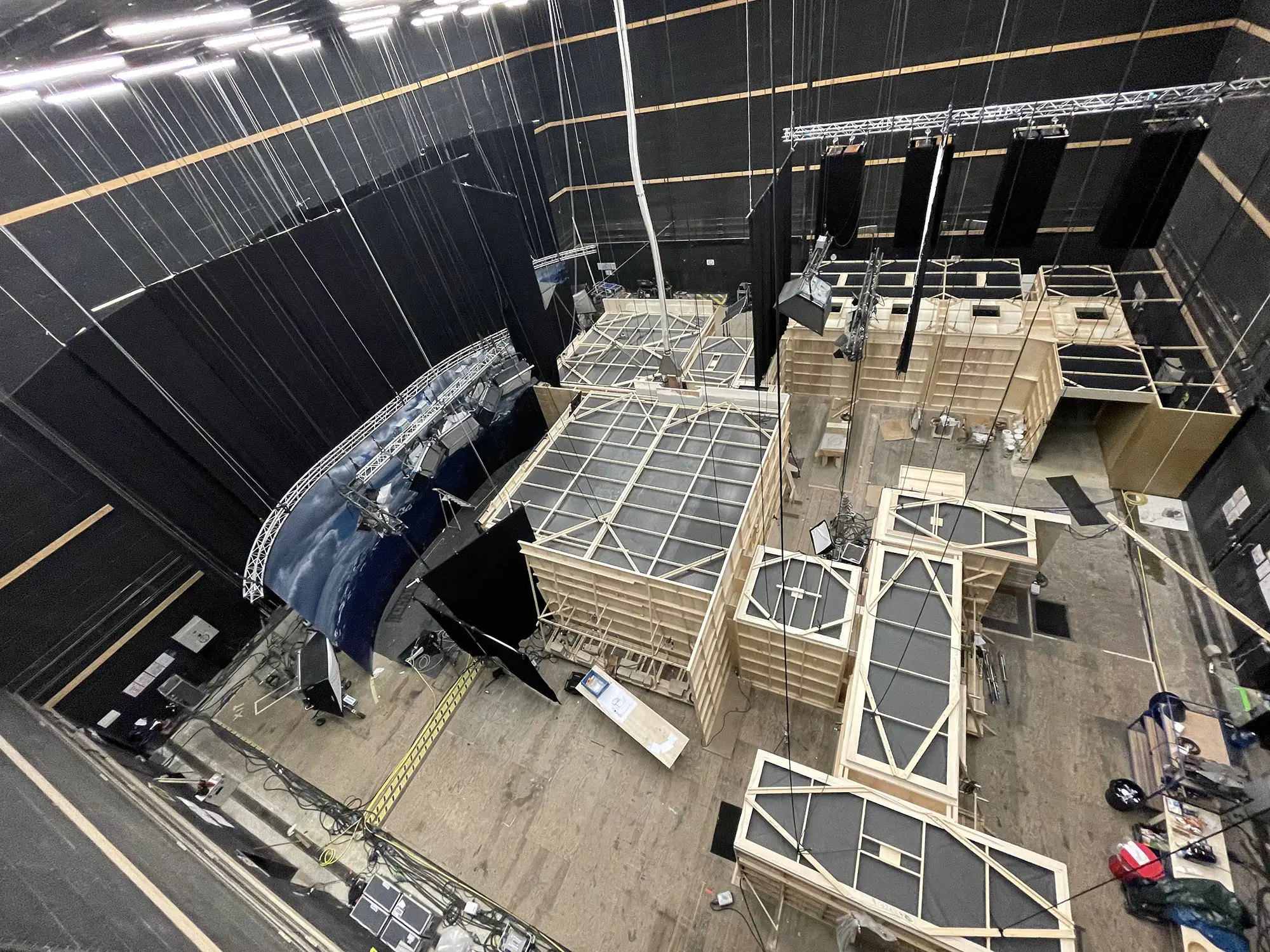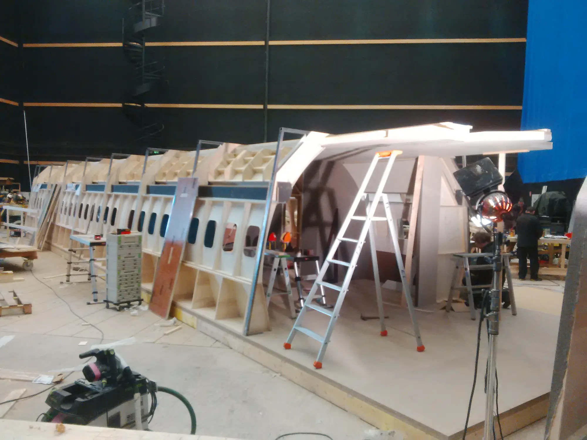 Murs recouverts de 4 lisses en bois sur toute la périphérie, espacés de 3 m
