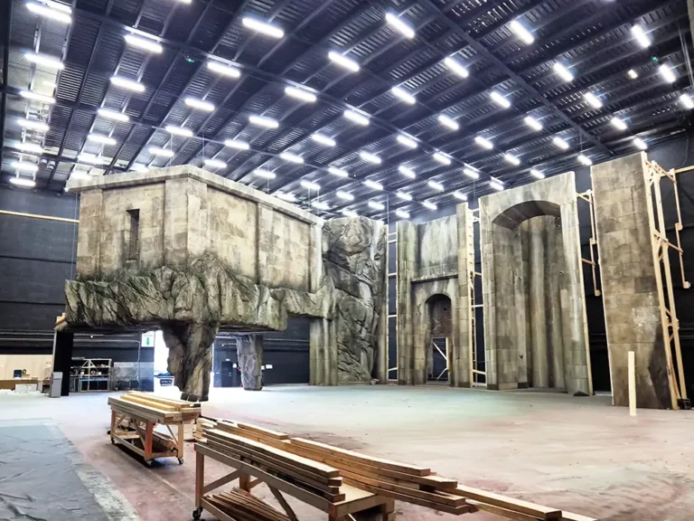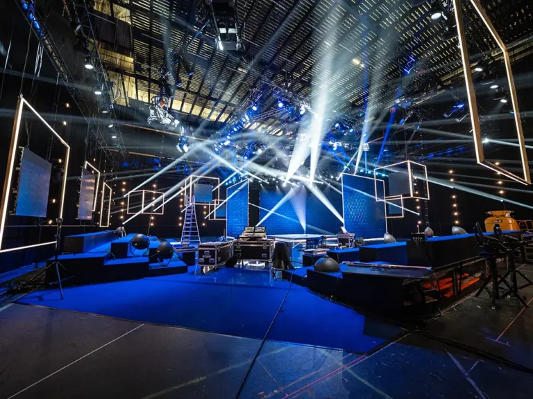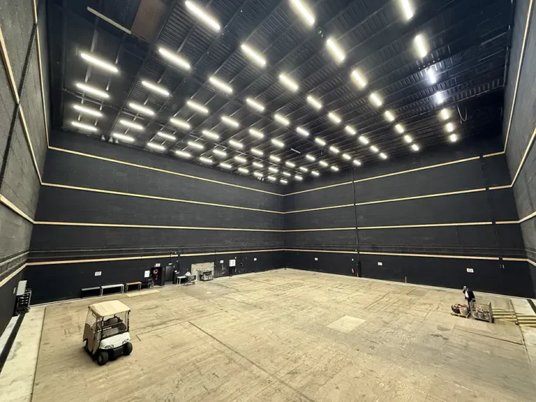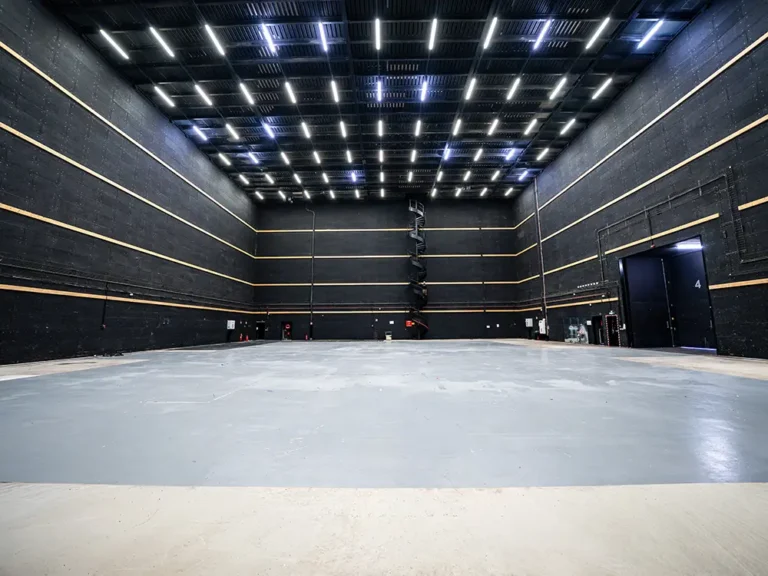 9 plateaux de tournage audiovisuel de la plus haute technicité, de 600m² a 2000m² et de 14.5m a 16m de hauteur sous gril.